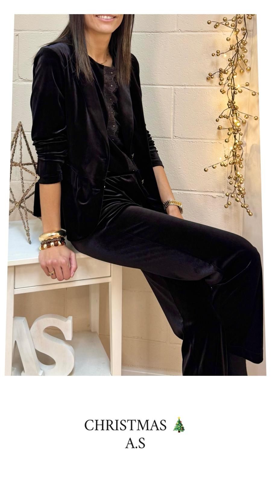 Americana de Alvin Solo en terciopelo cierre con dos botones y solapas decorativas.