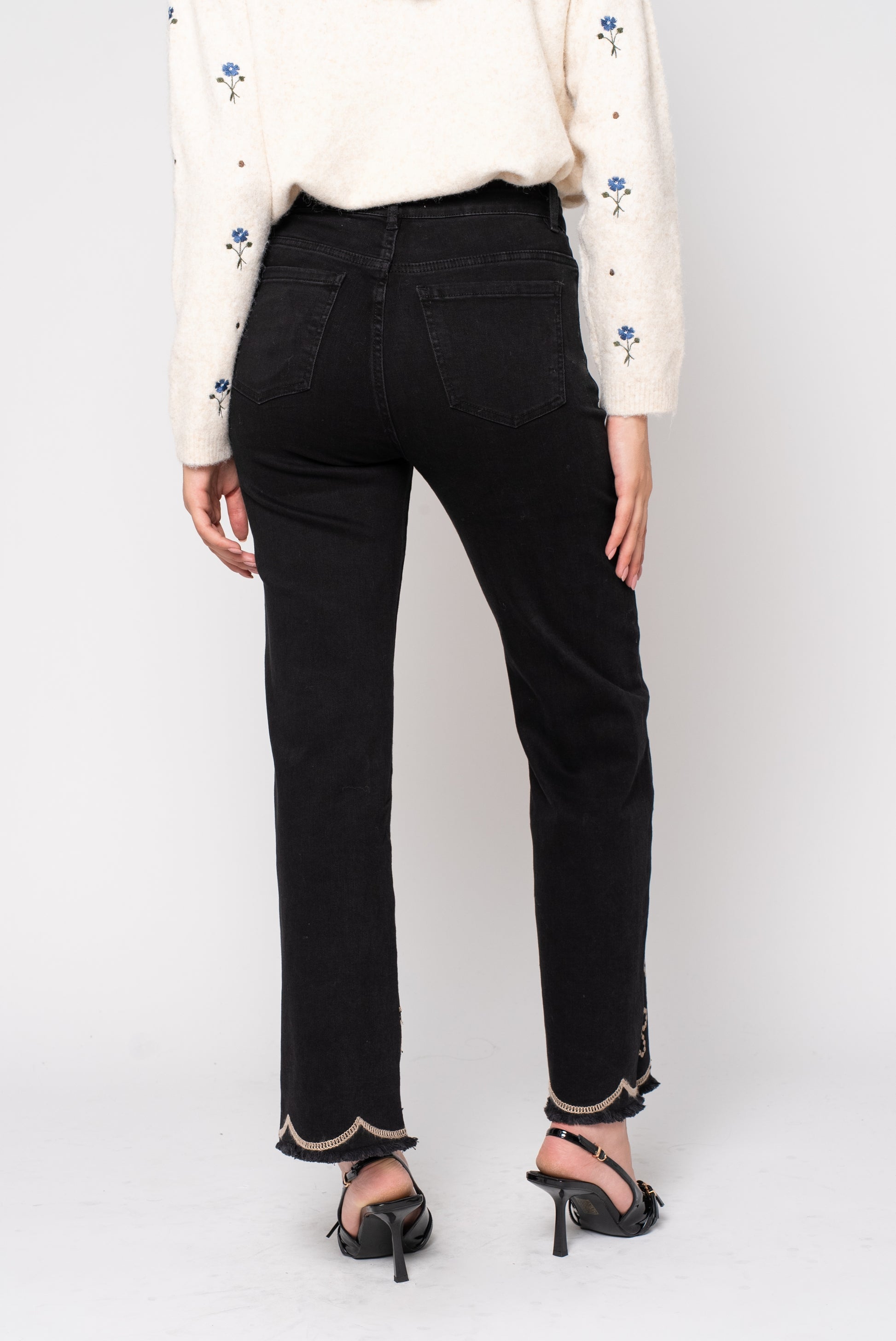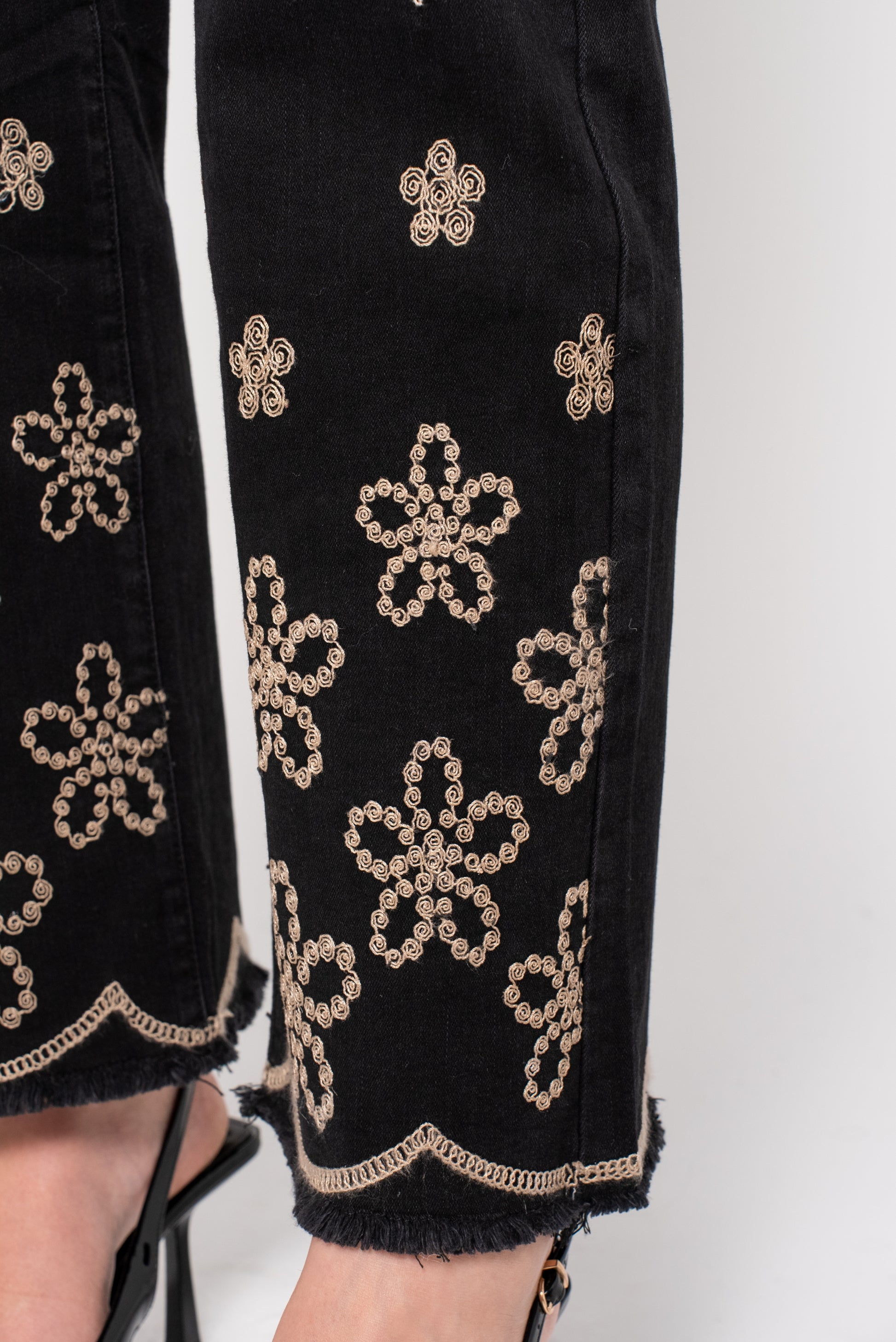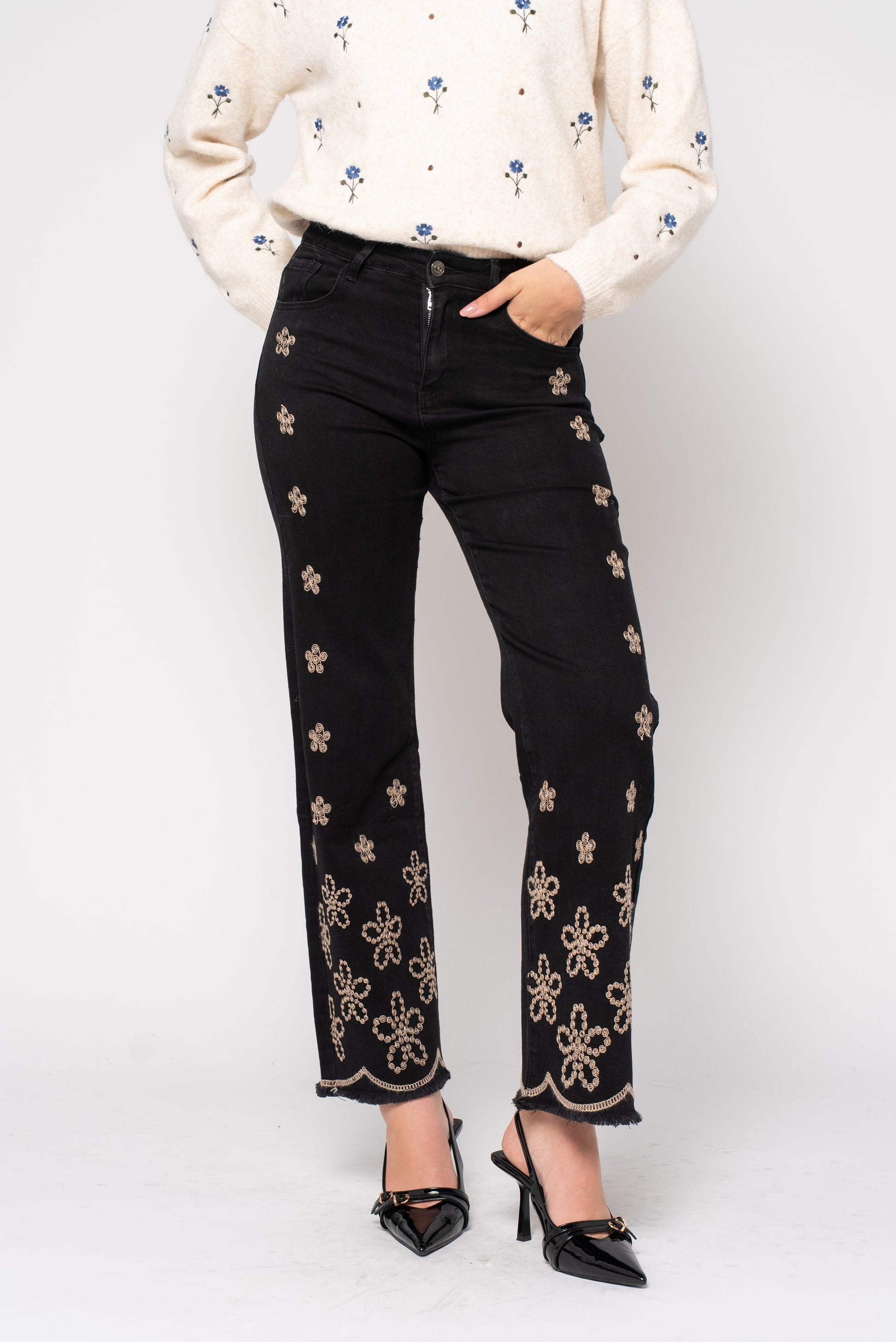 Descubra el lujo y la sofisticación de nuestro pantalón tejano Jean Bordado. Confeccionado en color negro y con un bordado en crudo, este pantalón es una pieza única que combina la comodidad del denim con un toque artístico y elegante. Perfecto para un look exclusivo y distinguido.